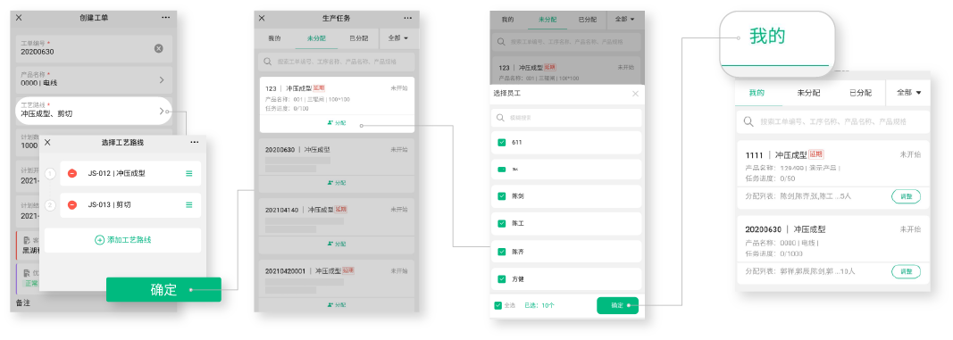 点选产品、工艺路线,选择对应员工,